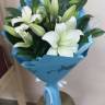 Букет из трех белых ароматных лилий – недорогой вариант для подарка. Эти цветы являются символом материнства и рождения в Греции, а у нас их любят за ошеломляющий, стойкий и необычный запах, который способен покорить любую представительницу женского пола.